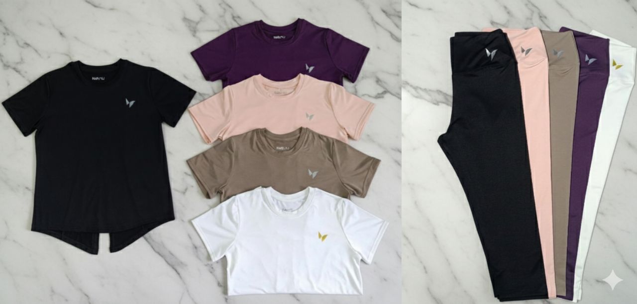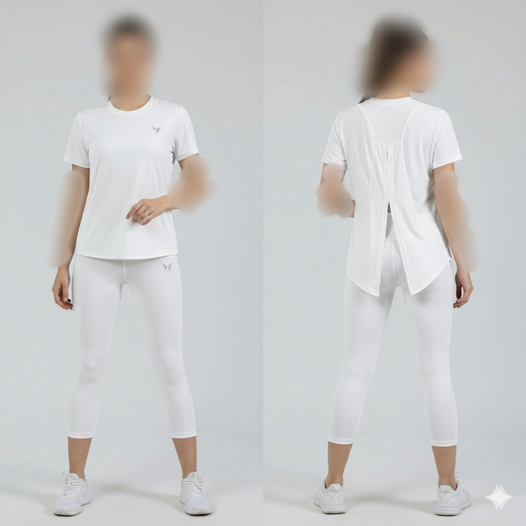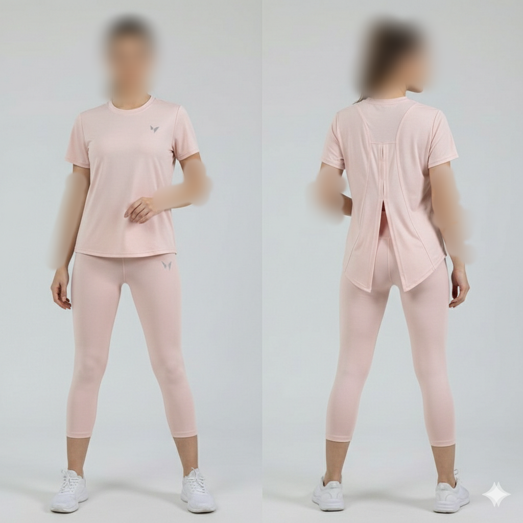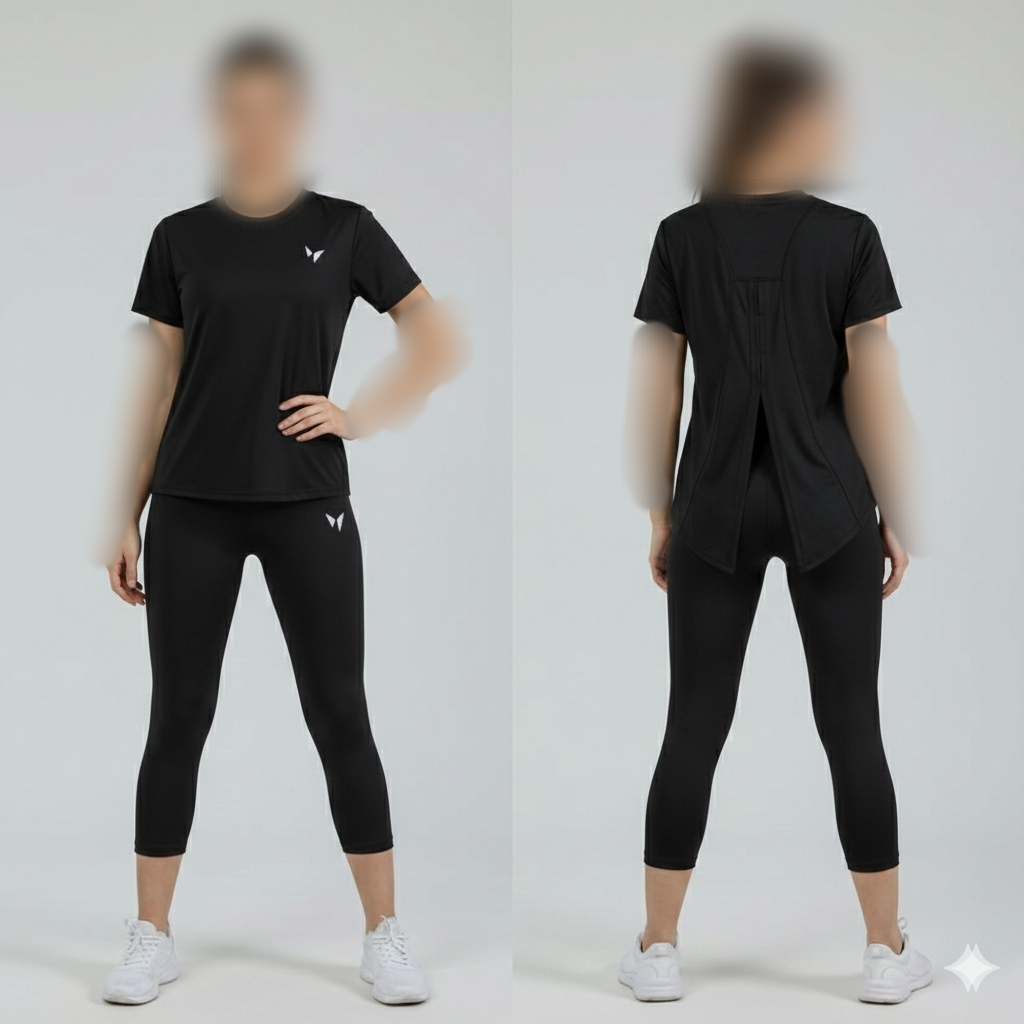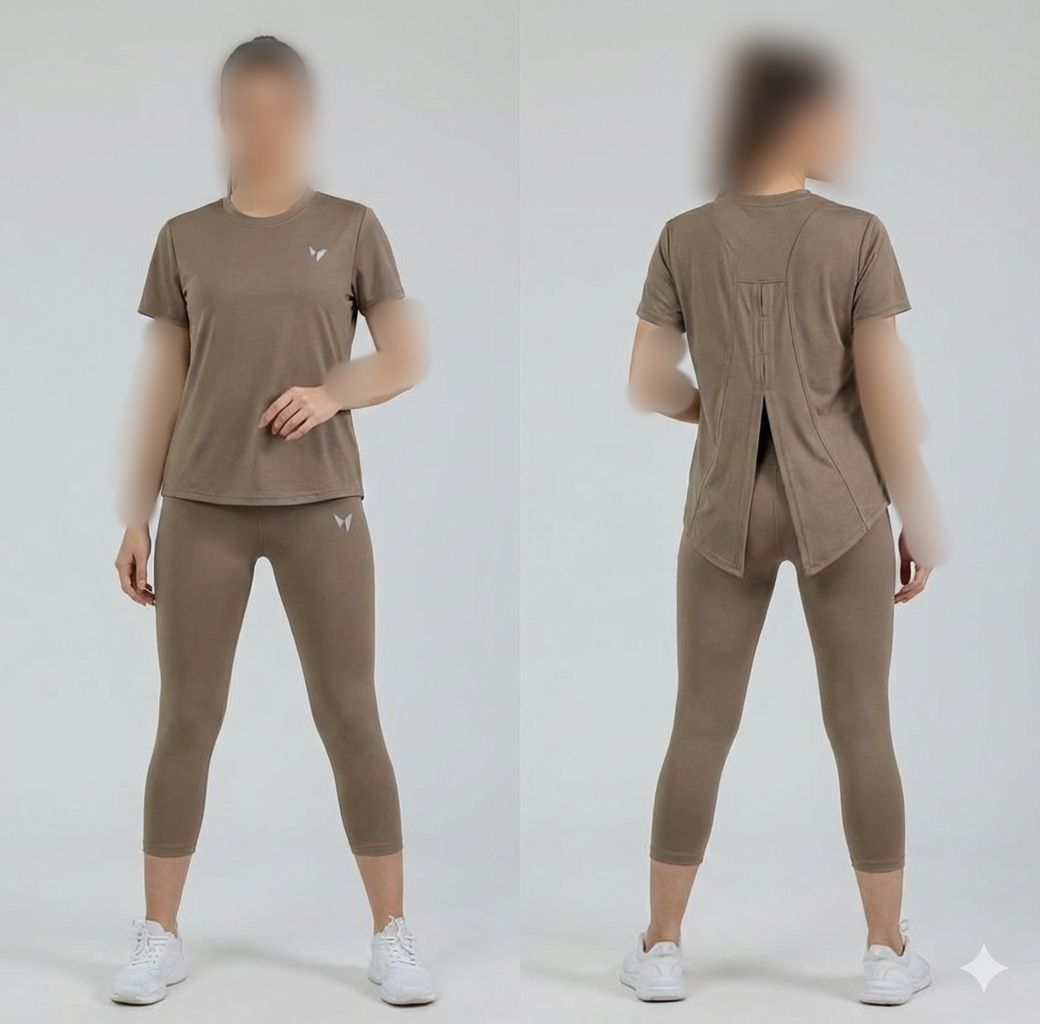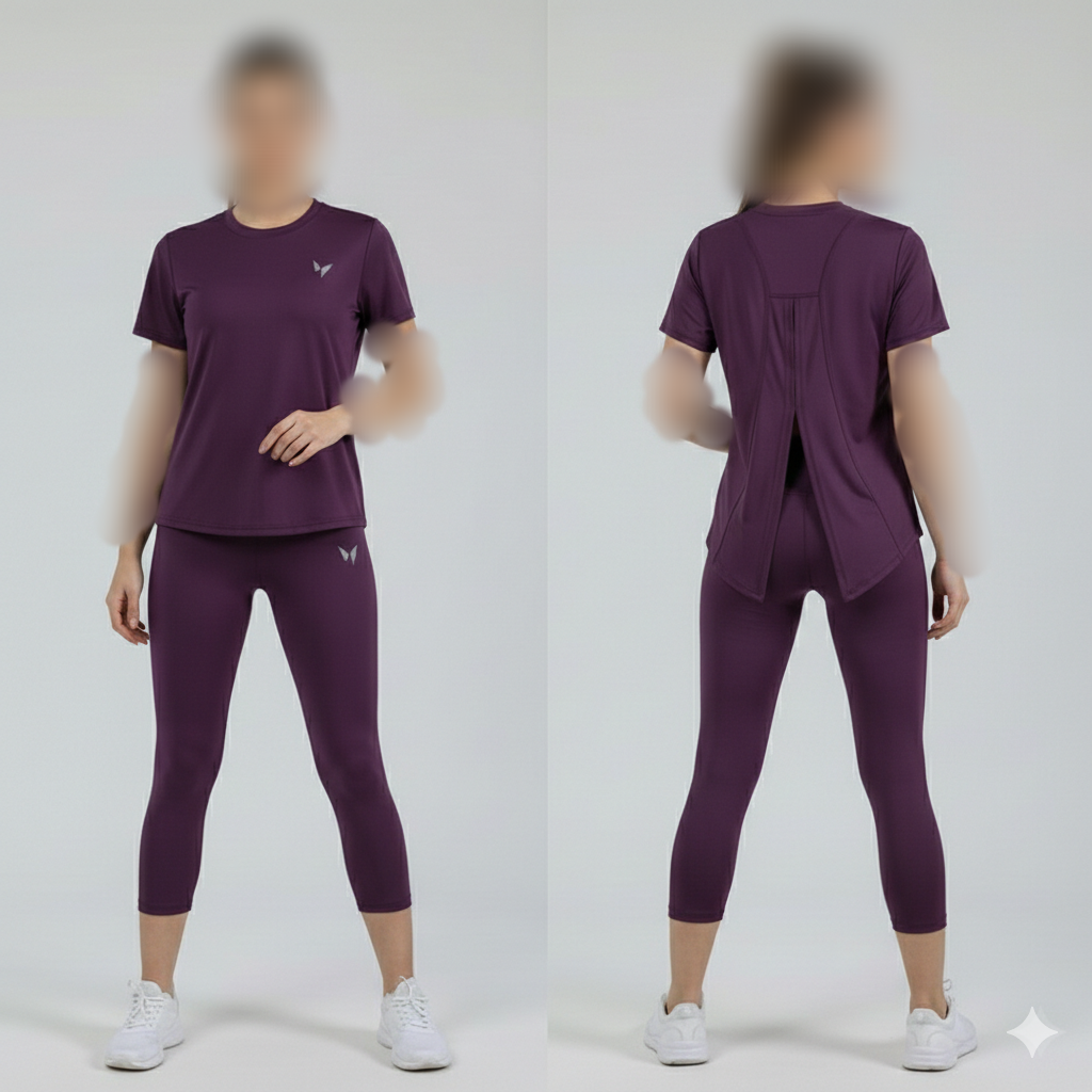 ست ورزشی زنانه تیشرت پشت چاکدار طرح پروانه ولگ برمودا ریون فلامنت