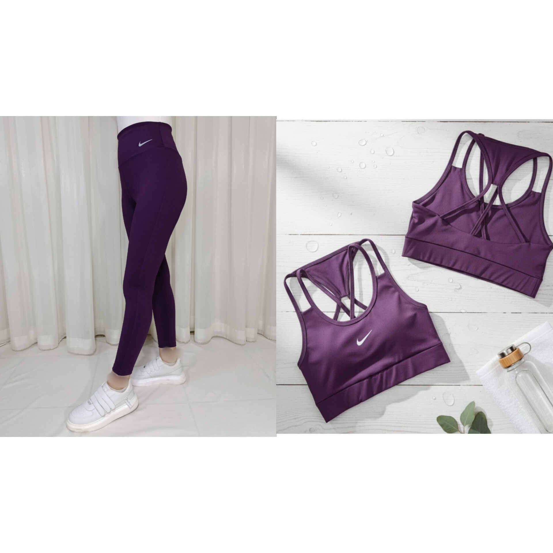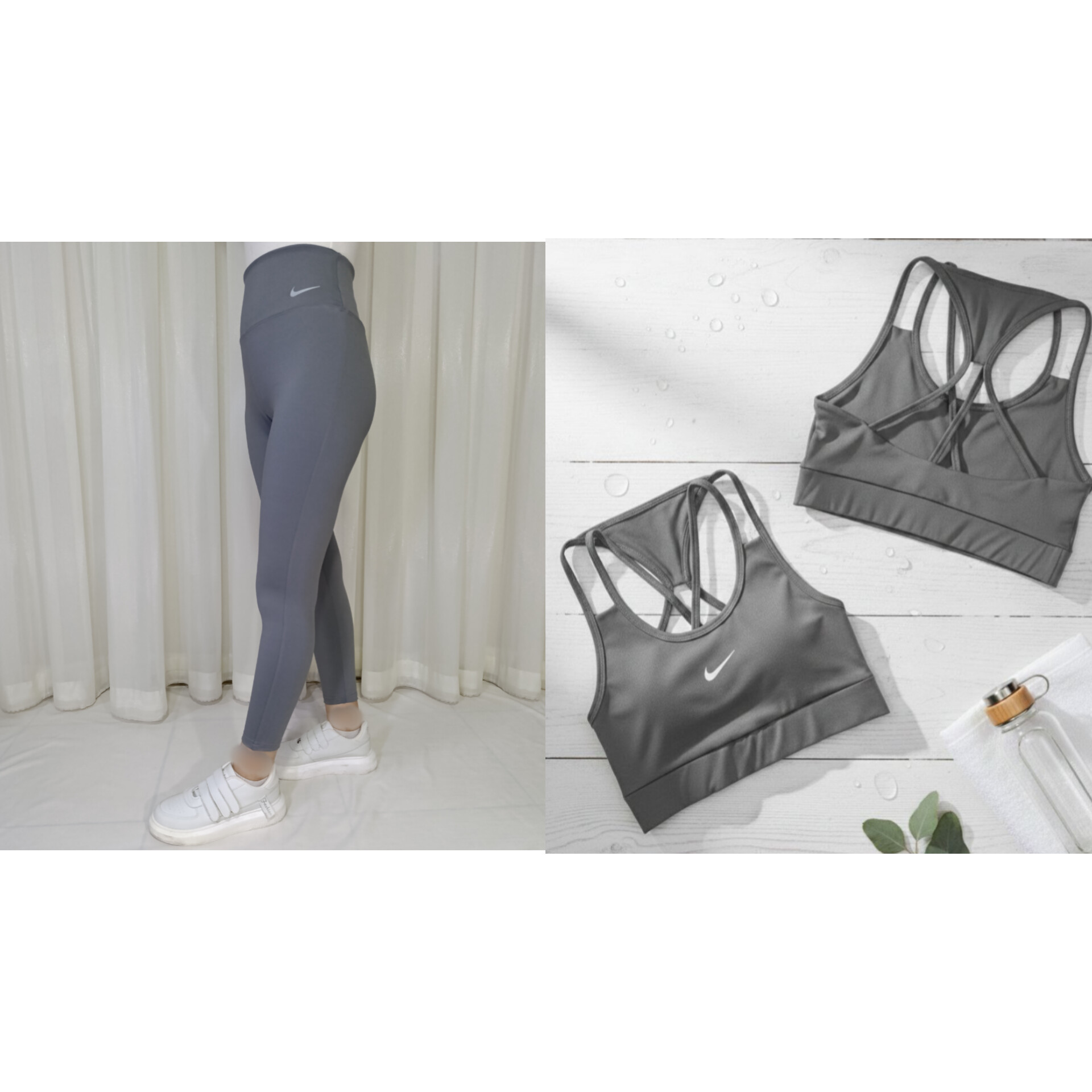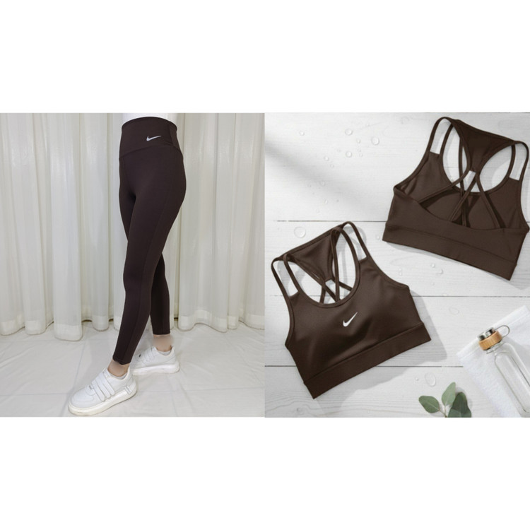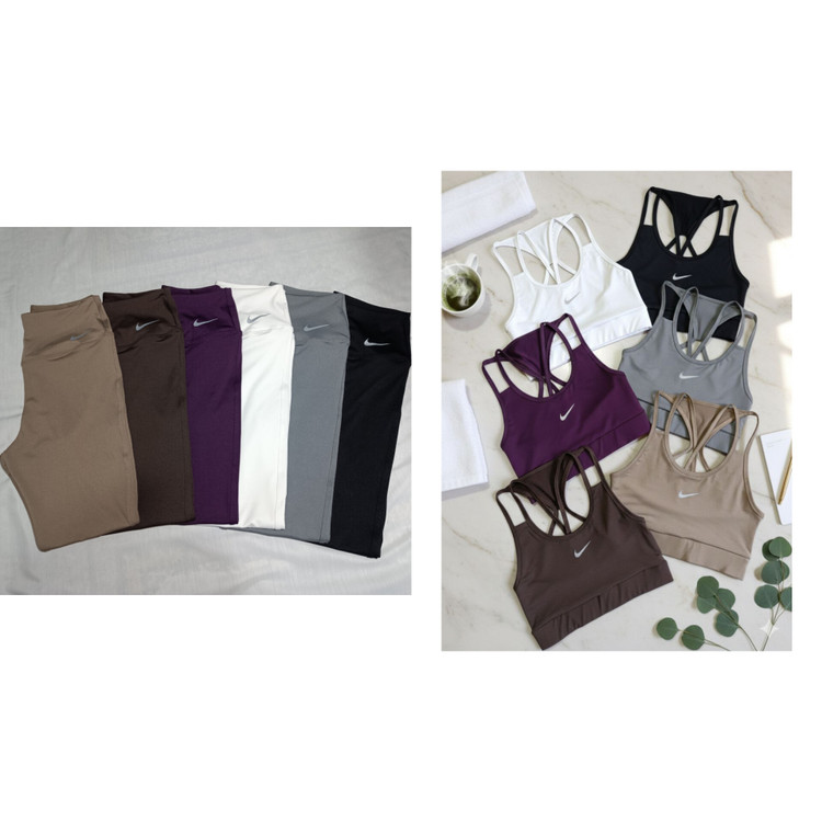 ست ورزشی زنانه نیم تنه پشت بندی و لگ ساده نایک ریون فلامنت